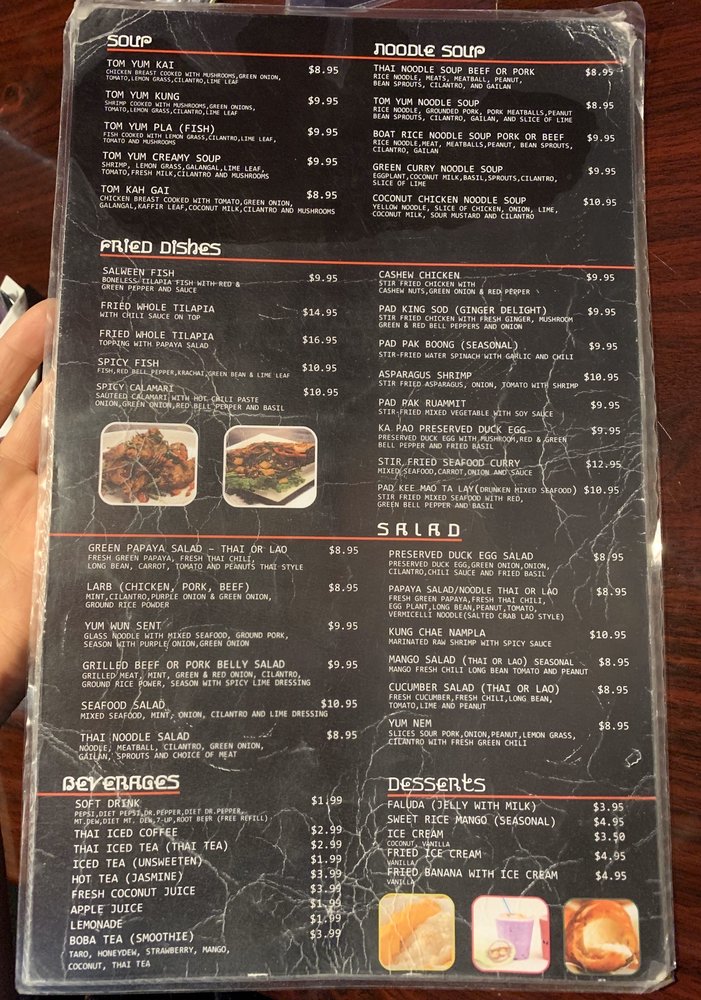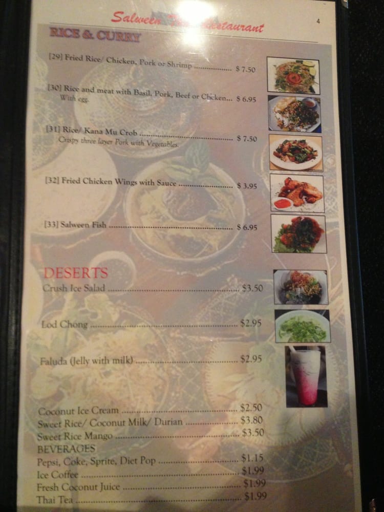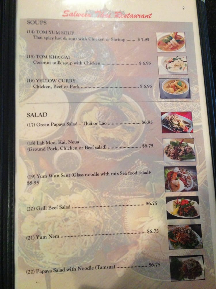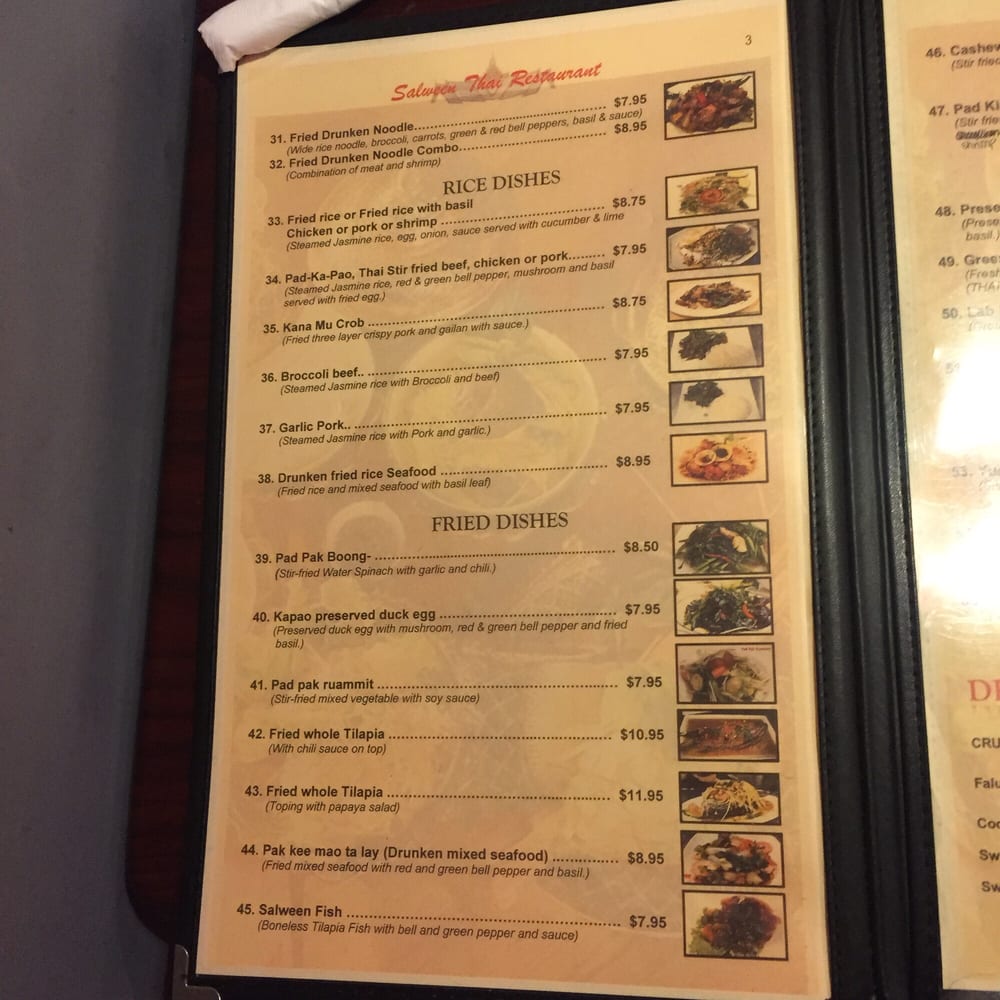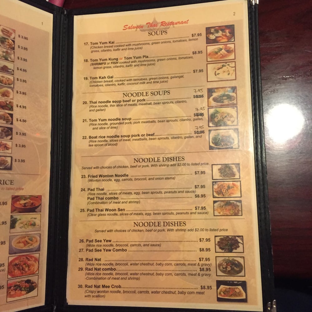 Salween Thai, located in Omaha, offers a variety of authentic Thai dishes with a cozy ambiance and attentive service. The menu features a wide selection of appetizers, noodle dishes, and rice dishes. Highlights include flavorful appetizers like the Chicken Satay and Crab Rangoon, as well as noodle dishes such as Pad Thai and Drunken Noodle. The rice dishes, like Thai Fried Rice and Pineapple Fried Rice, are also popular choices. Customers rave about the delicious food, generous portions, and the ability to customize spice levels to their preference. Whether dining in or ordering takeout, Salween Thai is a top choice for Thai cuisine enthusiasts in the area. The reviews from customers highlight the quality of the food and service, making it a must-visit spot for Thai food lovers.